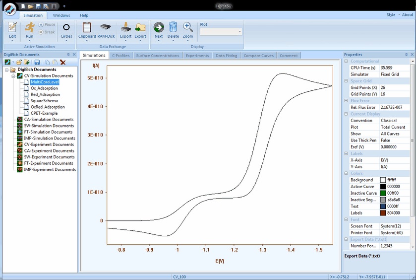 DigiElch 7 -Menus, Toolbars, customizable Properties and List of Documents