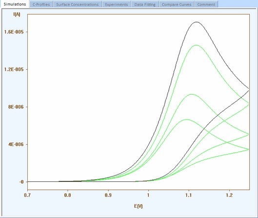 Simulated current curves using scan rates of 0.7,